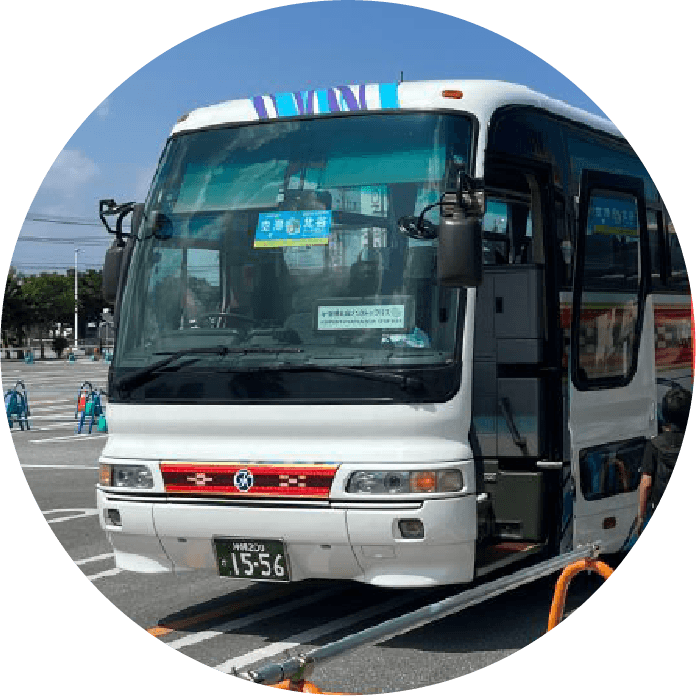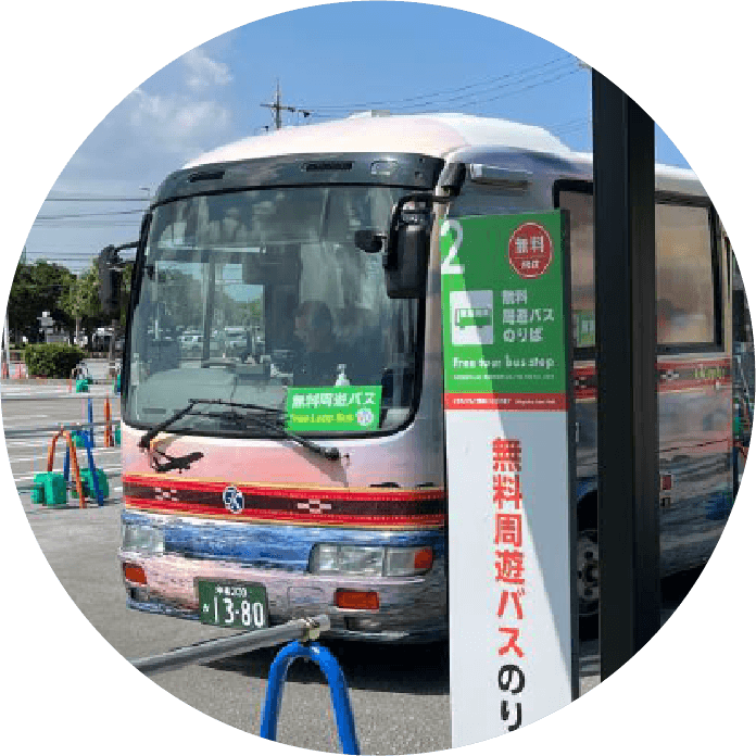 美浜アメリカンビレッジを中⼼とした美浜エリア内を、約30分間隔で周遊。運賃は無料ですので、周辺を移動される際にお気軽にご利⽤ください。 【⼟⽇祝のみ9便】