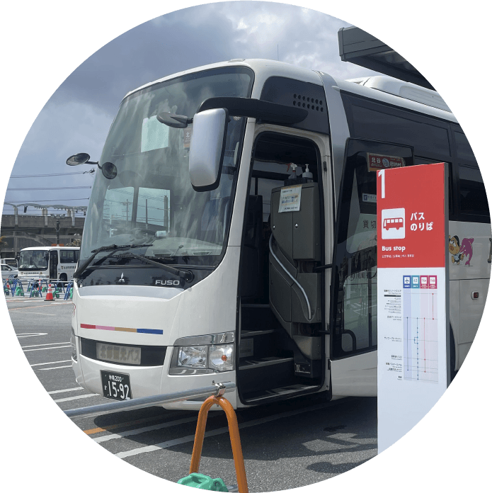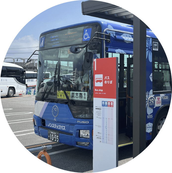 豊⾒城エリアから北⾕までの道のりをゆっくり楽しみたい⽅はこちら。地元の⼈も多く利⽤する路線バスのローカル旅を楽しみながら移動するのもおすすめです。